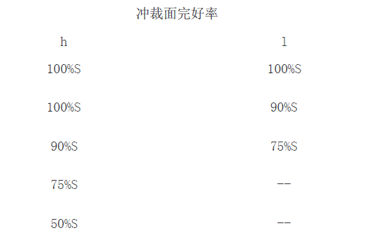 例中,沖裁面粗糙度Ra=2.4μm;完好率h=90%S;l=75%S;撕裂級(jí)別為2。