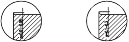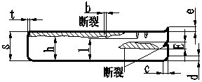 總和不大于相關(guān)輪廓的10%;t—允許的斷裂深度為1.5%S;e—毛刺高度(mm);c—塌角寬度為30%S(Zui大);d—塌角深度為20%S(Zui大)(齒形件時(shí)為30%S);E—撕裂帶的Zui大寬度。